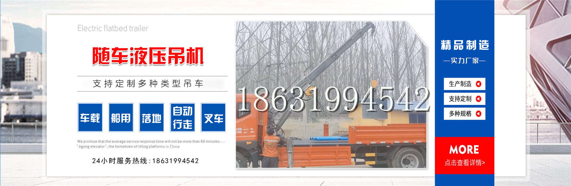 正定县随车吊机全电动液压吊正定县附近车载式的吊机价格随车吊机履带式液压正定县车载液压升降机本着对国家负责、对社会负责、对客户负责、对员工负责的企业责任,扎扎实实打基础,一心一意谋发展,实现了经济与社会效益的双丰收。“信誉是生命、质量求生存。”这是正定县随车吊机全电动液压吊正定县附近车载式的吊机价格随车吊机履带式液压正定县车载液压升降机全体员工秉承的原则,也是为之奋斗向前的目标。凝神聚力铸企魂,创新发展谱华章。在新的历史机遇和挑战面前,正定县随车吊机全电动液压吊正定县附近车载式的吊机价格随车吊机履带式液压正定县车载液压升降机人信心满怀,有责任和能力为国内外新老客户创造出更好更优质的产品,提供一流的服务。